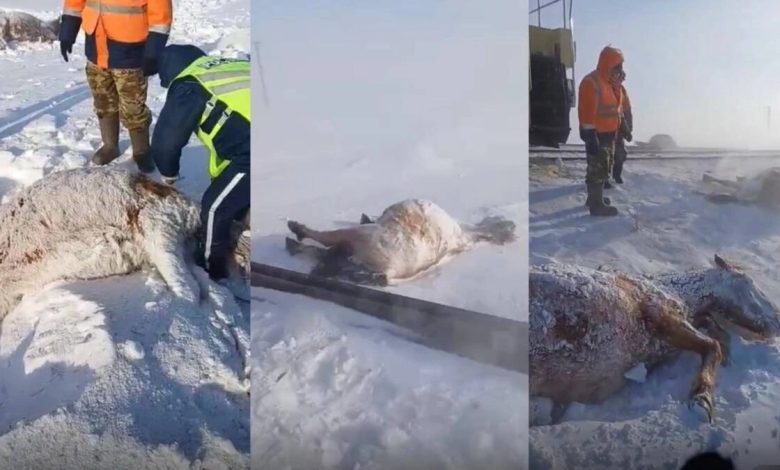 Ақмола облысында теміржол бойында жүрген жылқыларды пойыз басып кетті.